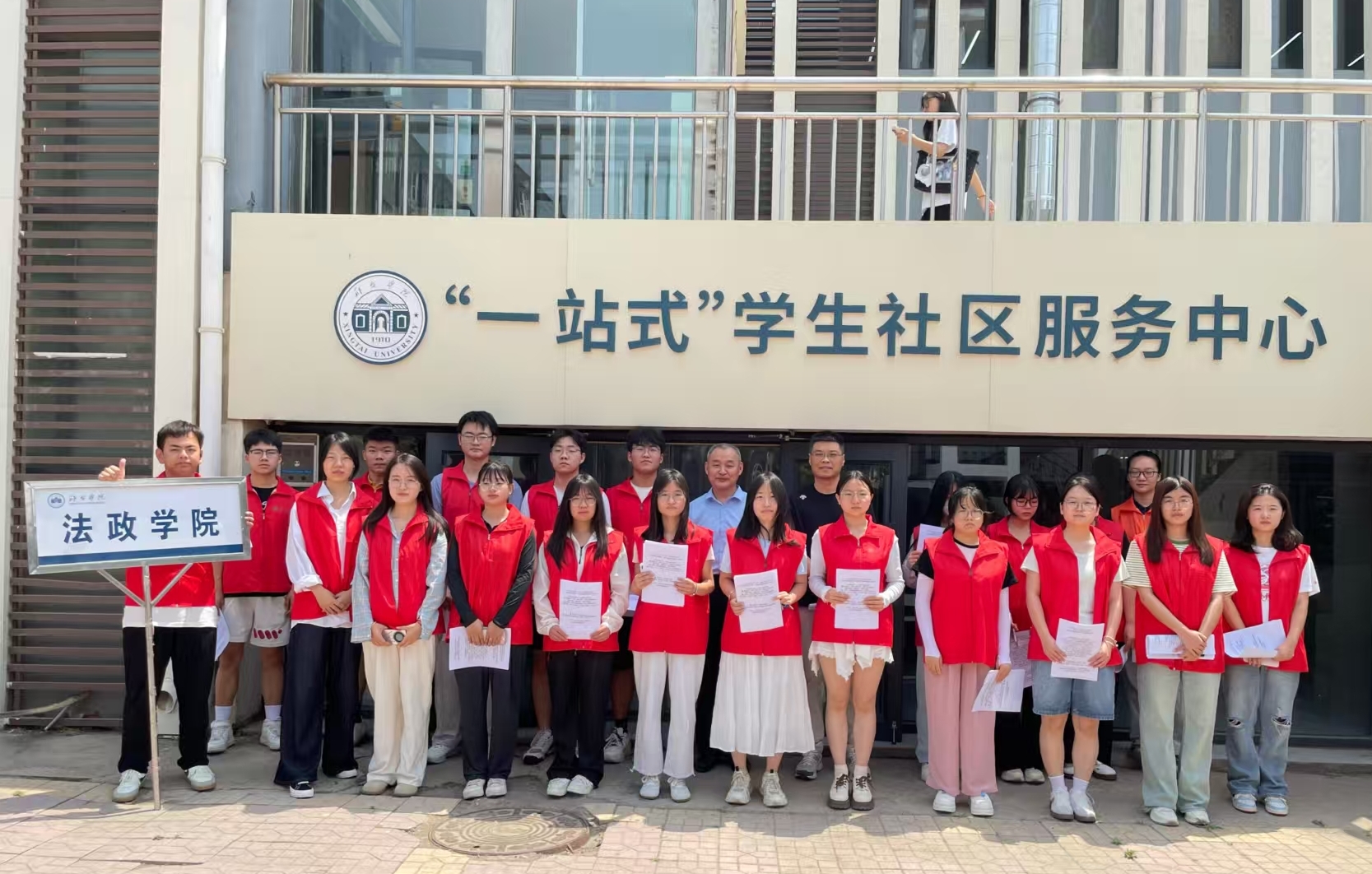 二、社区民法典宣传。法政学院志愿者深入学府社区,开展“青春普法进社区,民法知识伴我行”普法进社区志愿服务活动,向社区居民发放民法典宣传材料,用鲜活的案例、朴实的语言,深入浅出地向社区居民讲解《民法典》中的婚姻家庭、赡养老人、继承与遗嘱、民间借贷、合同履行等与居民生活紧密相关内容,围绕居民日常生活比较关心的法律问题和诉求现场答疑解惑。