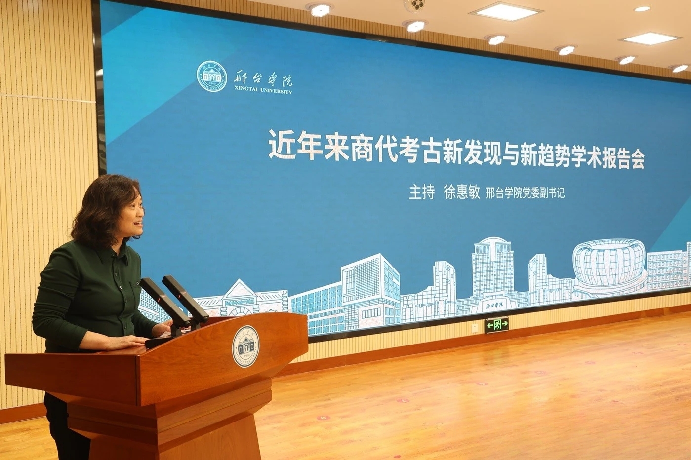12月28日下午,中国社会科学院考古研究所研究员、夏商周研究室主任常怀颖应邀在图书馆学术报告厅作了题为“近年来商代考古新发现与新趋势”的学术报告。校党委书记贾云霄出席报告会并致辞。邢台市文化广电和旅游局局长冀胜利,邢台学院副校长刘永利、邢台市文物管理处原处长、吉林大学特聘教授、项目组成员李恩玮,邢台市博物馆馆长、项目组成员石丛枝,邢台市文物保护和研究中心主任、项目组成员王霖出席会议。河北省邢台商代考古研究工作领导小组,邢台市历史文化研究会等单位相关负责同志,邢台学院相关职能部门负责同志,河北省教育厅人文社科重大课题攻关项目“东方人类与太行山东麓早商先商文化探源”课题组全体成员,历史学专业教师和学生代表参加报告会。报告会由党委副书记徐惠敏主持。