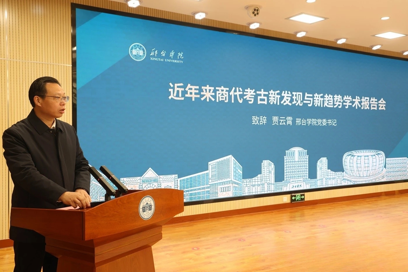 贾云霄在致辞中对有幸邀请到常怀颖研究员来我校传经送宝,帮助指导我们的考古研究工作,并为我们带来精彩的学术盛宴表示诚挚感谢!他表示,商代考古的发掘与研究对于补齐夏商周三代文明中的缺失环节,从中华优秀传统文化中寻源寻根,从而坚定文化自信具有不可估量的价值。河北省是商文化发源地之一,商代文化遗存在河北省中南部分布广泛,在商代文化研究中占据着重要地位。商代也是邢台历史演进过程中一段极其重要的时期,在邢台留下了丰富的商代遗址。此次获批河北省人文社会科学研究重大课题攻关项目,是学校服务地方文化建设的重要契机,希望通过此次项目的深入实施,能够有效汇聚各方专家学者的智慧与力量,加强商文化研究的深度与广度,推动学校历史学科与其他学科的融合发展,共同为文化兴市、文化兴冀战略作出积极贡献。