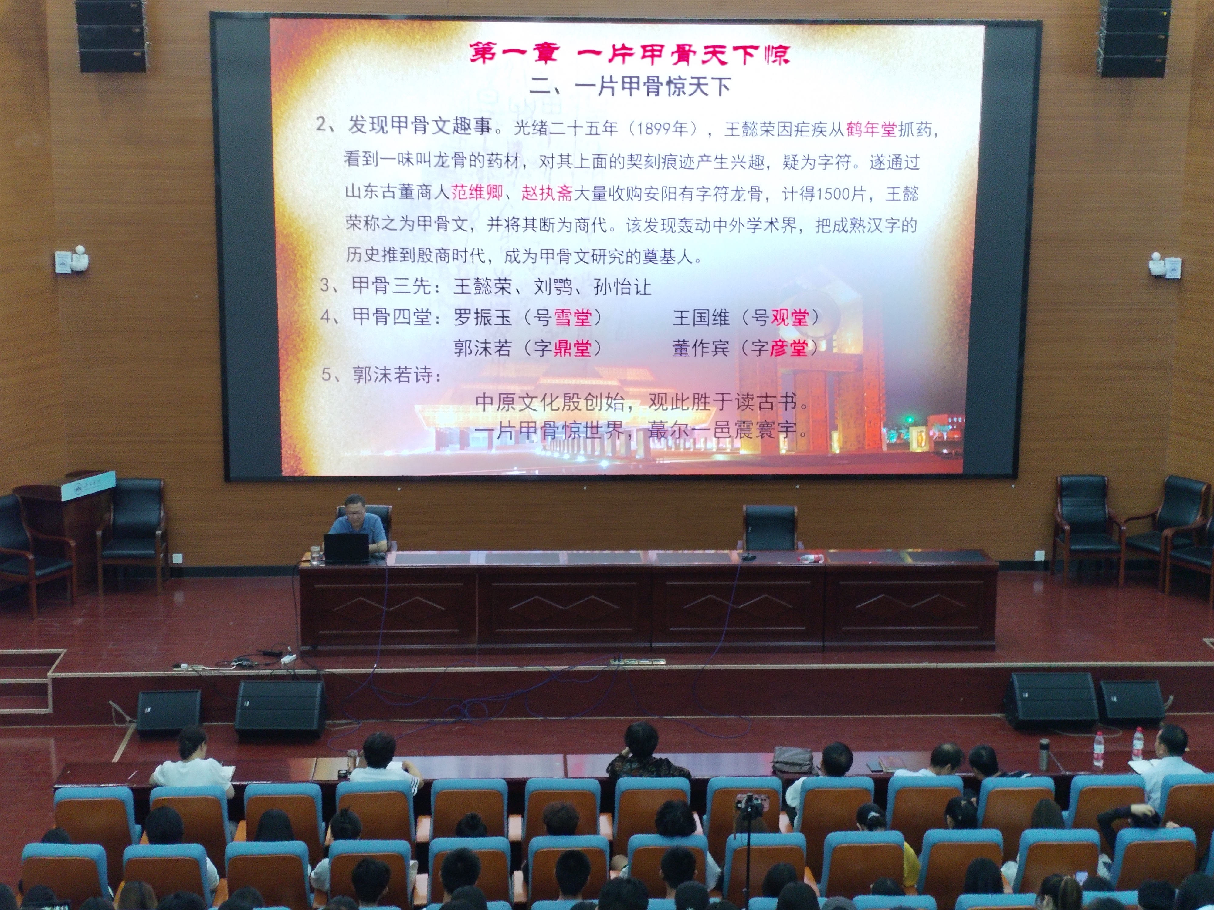 5月31日,邢台市甲骨文研究专家刘建华先生在邢台学院公共教学楼学术报告厅作《时空穿越——悠悠甲骨话邢襄》的报告,历史学专业全体师生聆听了本场讲座。