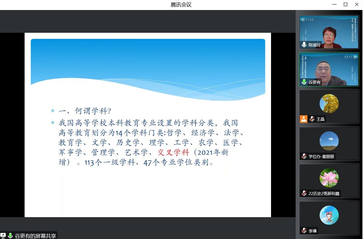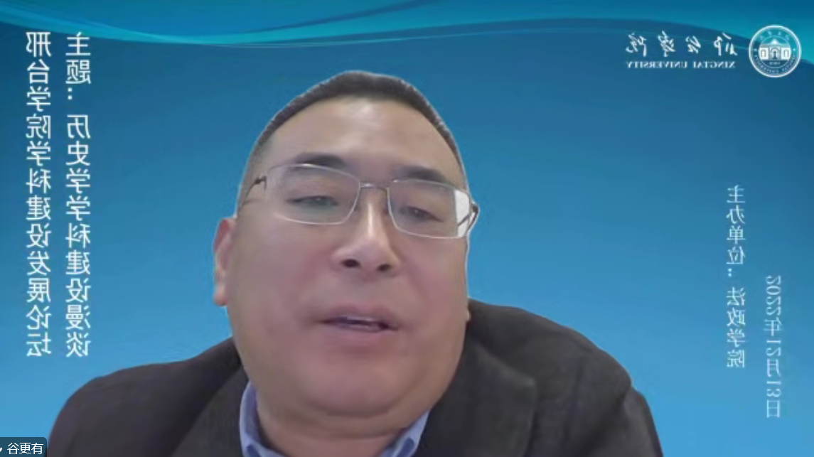 为推动历史学学科建设,响应邢台学院学科发展规划和建设要求,2022年12月13日下午三点,邢台学院法政学院邀请河北师范大学历史文化学院谷更有教授作了题为《历史学学科建设漫谈》的讲座。此次讲座采用线上腾讯会议的形式举办。讲座由法政学院院长陈淑玲主持,学位办主任董丽丽、教务处副处长孙东岩、戏剧影视艺术系主任陈志良应邀参加,我院教学副院长李智、历史教研室主任王晶和历史学专业全体师生共同聆听了此次讲座。