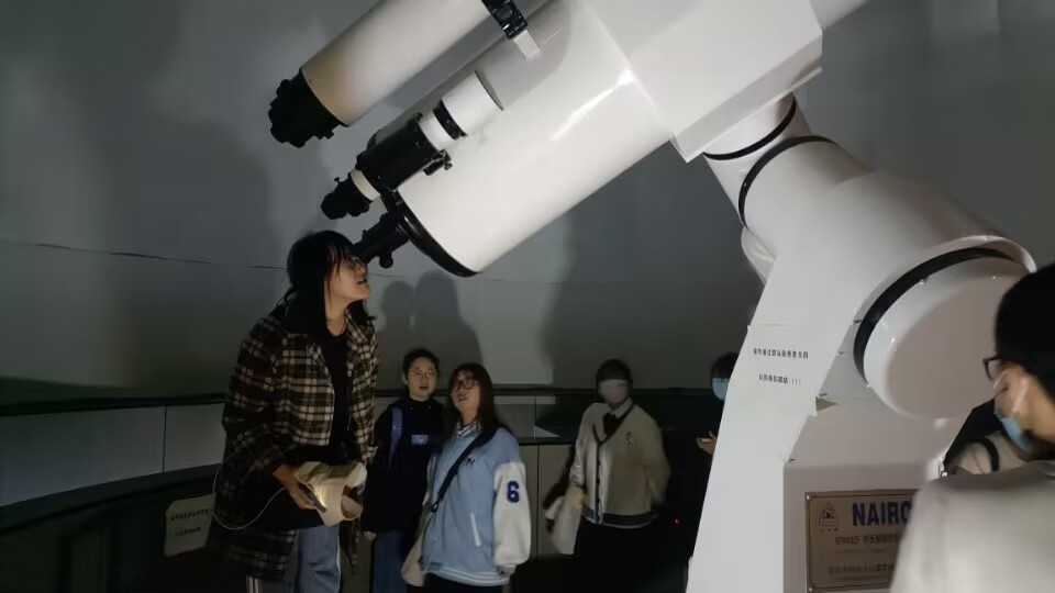 在邢台学院天文台第一展厅,物理与电子工程学院志愿者介绍了天文学的有关知识,太阳系、星座、星云、宇宙的形成与发展等;在第二展厅,志愿者介绍了望远镜有关知识,并指导师生通过天文望远镜观看星体。